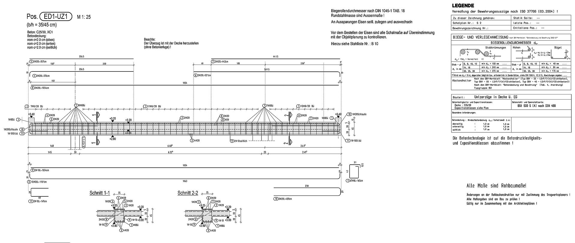 - Erstellen von Schal- und Bewehrungsplänen für die Herstellung von Stahlbetonarbeiten als Decken, Stützen, Bodenplatten etc.